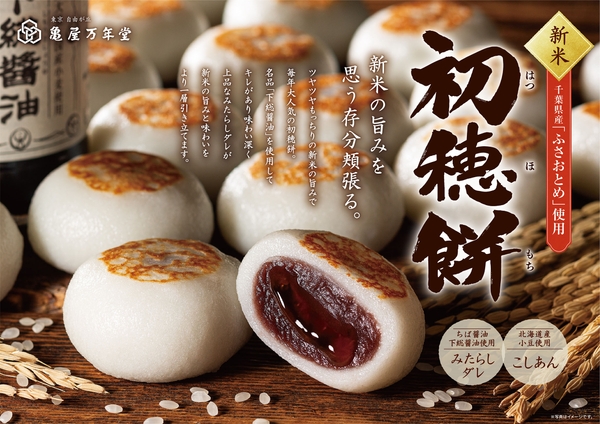 株式会社亀屋万年堂(本社・工場:神奈川県横浜市都筑区 / 総本店:東京都目黒区自由が丘)は、この秋に収穫した千葉県産「ふさおとめ」の新米を使用した「初穂餅 (はつほもち)」(1個140円(税込)/常温販売)を2023年10月1日(日)より亀屋万年堂直販店舗(東京・神奈川26店舗)にて11月下旬ごろまでの期間限定販売いたします。