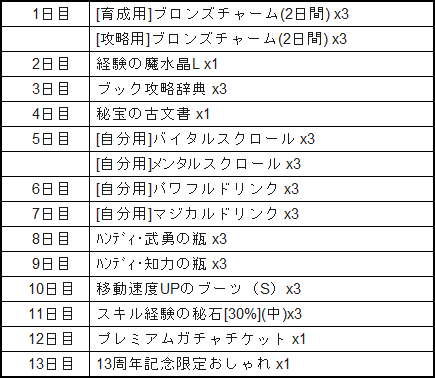 期間中は限定デイリーミッションで1日1回ログインしモンスターを1体討伐するだけでガチャ宝石が獲得でき、毎日クリアすれば合計でガチャ13回分のガチャ宝石が貰えます。