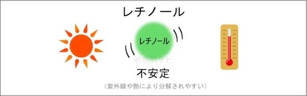 レチノールは不安定で紫外線や熱で分解・変質しやすいです。
