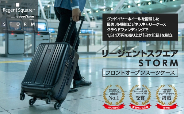 世界初!GOODYEARホイールを装着したスーツケース 『Regent Square』のクラウドファンディング支援金額が560万円を達成