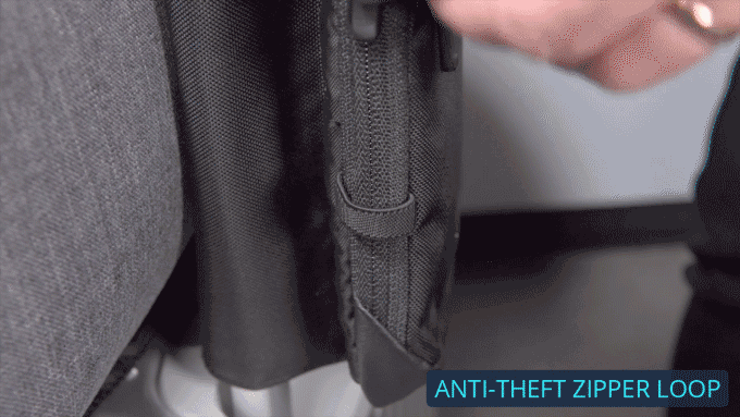 そんな事態を防ぐため、スリ防止用の加工を施しました。ジッパーを閉めたら盗難防止用のホルダーの中にジッパーを入れるだけでOK。