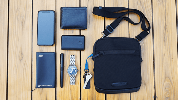 収納力もあって、それでいてコートの下に着用しても目立たない薄さ。インナーショルダーとしてもカッコよく着こなせます。