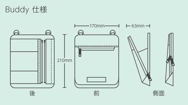 Buddy裏にある外ポケットは、そんな時に活躍します。今はマスクを一時的に収納するにも便利です。別々に収納することで清潔感も保てます。