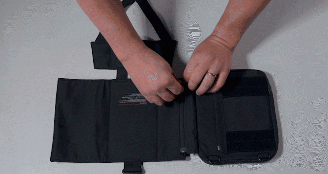 変身もあっという間です。Buddyからドッキング用のオーガナイザーベルトを外して、ポケット付きのプロテクターを取り付けます。