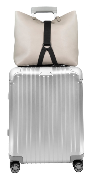 続いて手荷物をケースの上に置いてBuddyのトラベルオーガナイザーベルトを使って「カチッ」とドッキングさせてください。