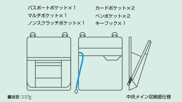 Buddyにはパスポートケースとしても使えるセキュリティ対策と防犯のための工夫を施しました。