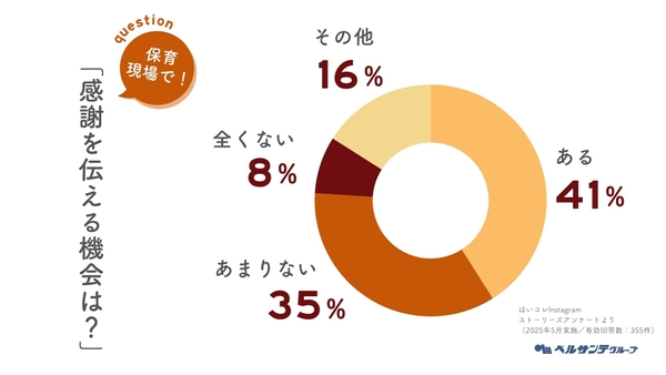 実際にInstagram上で行ったアンケートでも、「感謝を伝えられる機会があまりない/全くない」と答えた保育士が43%と、「ある」と答えた41%を上回る結果となりました。