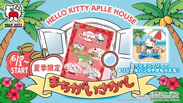 「HELLO KITTY APPLE HOUSE」りんごのおうちを探検して限定デザインをゲットしよう!『まちがいさがしミッション』 夏限定ノベルティ6月1日より配布開始