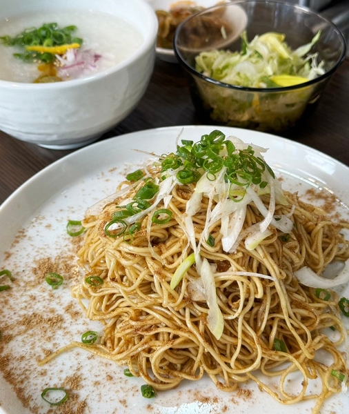 旨味が濃厚で、山椒の香りとアクセントが効いています。極細麺でもしっかりとした食感が病みつきになります。お粥との相性がとにかく抜群なので、ぜひお粥とセットでお召し上がりください。