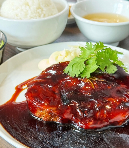 カナダのブランド豚、大麦仕上げ三元豚を得意の低温調理でジューシーに仕込み、カリッとした衣をまとわせ、調味料にこだわった黒酢ソースで仕上げた酢豚は、食べれば見た目以上のインパクトがあります。とにかく米が必須なので、食べ過ぎてしまわないよう注意してください。