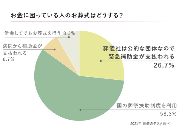 半数以上は正解しましたが、約3割の若者は「葬儀社から緊急補助金が支払われる」と回答しました。「葬儀」という非日常な仕事を行っている葬儀社は、民間の企業ではなく「政府」や「自治体」の仕事だと勘違いしている若者がいるのかも知れません。