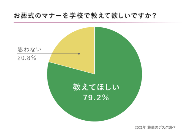 お葬式マナーを教えて欲しいと回答した若者は8割と、大多数が知っておきたいこととして認識していました。