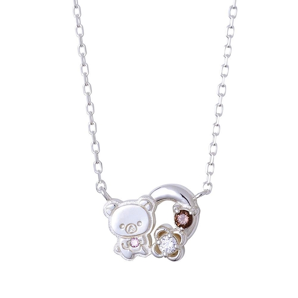 お花畑でくつろいでいるコリラックマが愛らしいネックレス。