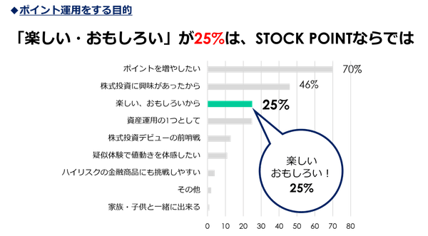 <STOCK POINT会員アンケート調査2023> ポイント運用の目的「楽しい・おもしろい」が25%