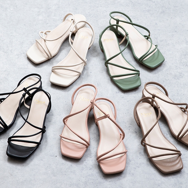 2021年春夏トレンドの細いストラップサンダル。wellegでは、先シーズンから引き続きトレンドのスクエアトゥと組み合わせて、ストラップのデザインと、ヒール高のバリエーション豊富に揃え、発売開始しました。