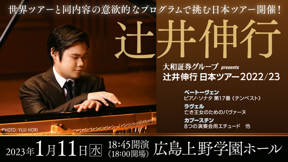 【広島公演 チケット先行販売情報】大和証券グループ presents 辻󠄀井伸行 日本ツアー2022/23