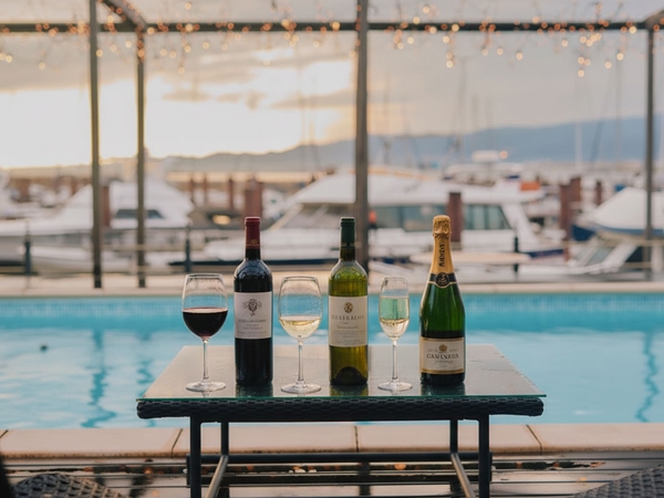 プランをご利用のお客様には、ワインのポテンシャルを引き立てる「特製アリオリソースのアテ」を無料でお付けいたします。マリーナを望むテラスで、芳醇なワインとこだわりのアテが、日常を特別な記念日へと変えていきます。