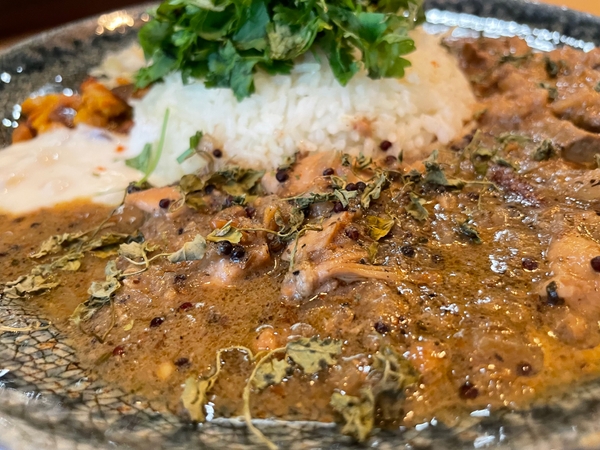 またこれらのカレーは、あいがけで1,400円でも提供されます。本格創作スパイス料理とバスマティライスとブランド米の瑞々しくてふわふわな食感をお楽しみください。