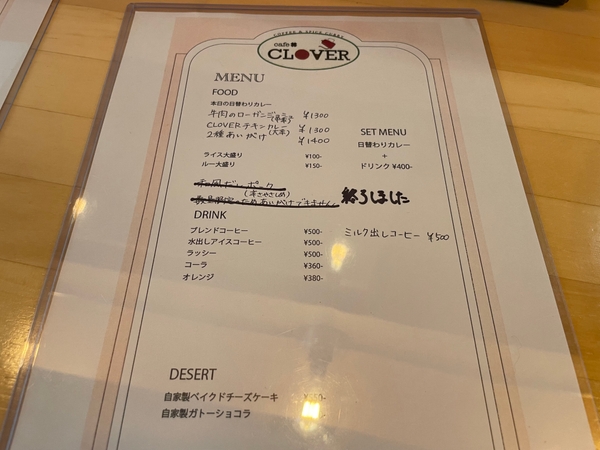 CLOVERチキンカレー1300円