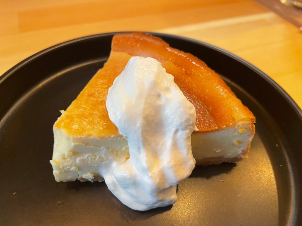 「カフェクローバー」のもう一つの魅力は、濃厚なベイクドチーズケーキやガトーショコラです。なんと1/4サイズの大きさで提供され、心ゆくまで楽しむことができます。