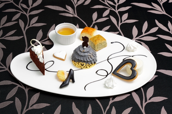 ドレスを纏ったプリンセスケーキやハイヒール型のヒールチョコ、ハート型のアイシングクッキーなど、まるでアートのようなスイーツの数々を、パレットを模したプレートの上に散りばめました。お好みでお選びいただける“推しカラー”は、系列店※で開催し好評を博したレッド、ピンク、イエロー、ブルー、グリーンの5色に加え、このたび新たにラベンダーパープル、ホワイトベージュ、ブラックの3色をラインナップに追加。全8色よりお好きなカラーをお選びいただけます。ウエディングパティシエ渾身の、乙女心をくすぐるキュートなスイーツ・パレットをご堪能ください。