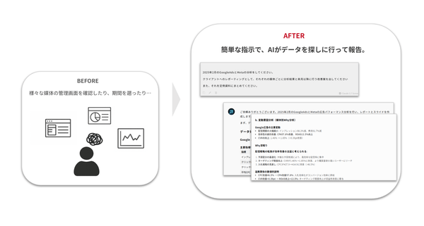 「入稿やクリエイティブ制作業務に追われ、十分な振り返り時間を確保できない」「同一の数値に対する判断が属人化し、施策提案に個人差が生じる」といった課題により、運用型広告の成果を最大化できずにいるという声を数多くいただいてまいりました。