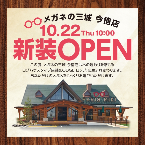 「パリミキ」「メガネの三城」を展開している株式会社 三城(本社:東京都港区、代表取締役社長:澤田将広 )は、2020年10月22日(木)兵庫県姫路市に「メガネの三城 今宿店」がログハウスタイプ店舗として、装い新たにリニューアルオープンいたします。