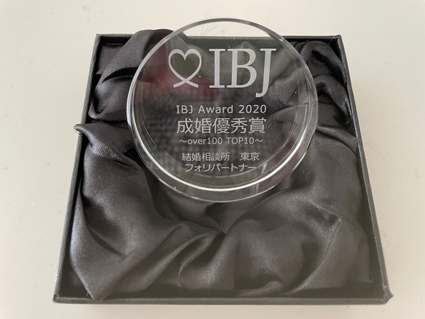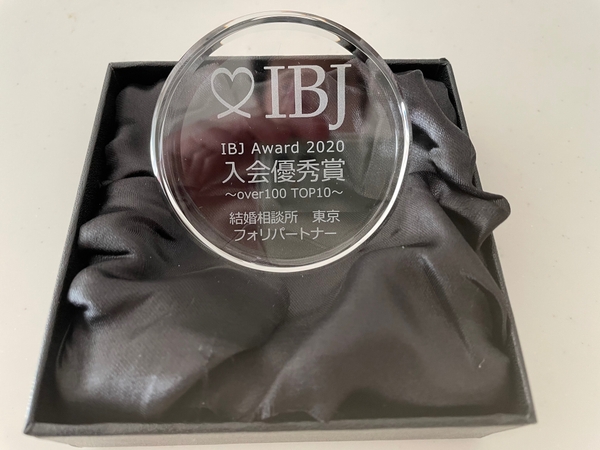 結婚相談所 東京フォリパートナー(運営会社:株式会社フォリパートナー、本社:東京都渋谷区、代表取締役:守部 弘昭)は、所属連盟である「IBJ(日本結婚相談所連盟)」より、全国約2,640社の加盟店の中で、2020年の1年間にご入会数とご成婚者数の伸び数においてTOP10に入ったとして表彰されました。