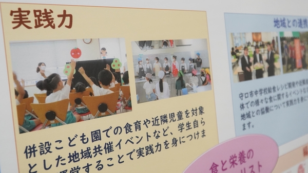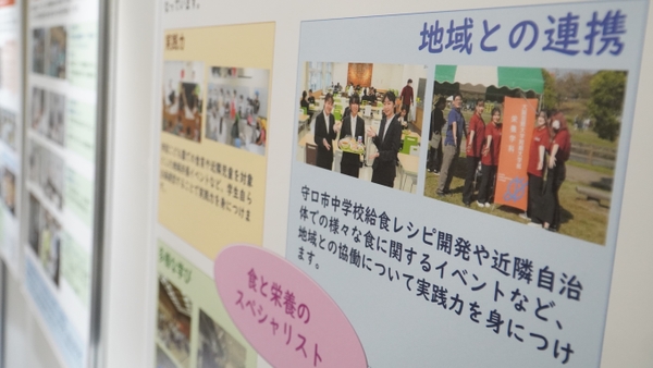 海老澤セミナーでは、これまで大学近隣の地域資源である門真れんこんについて、レシピ開発などに取り組んできました。さらに、食べ物を使った科学実験を通して子どもたちに食育活動を実施してきました。今回の大会では、海老澤セミナーのこれまでの取り組みを中心に、さらに栄養学科の食育の取り組みについてパネル展示を行いました。