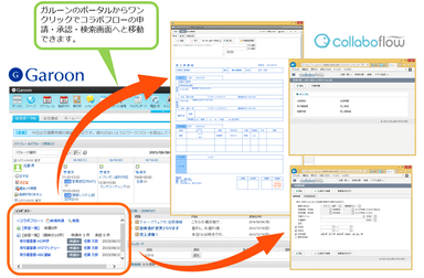 ExcelのファイルからWebの申請フォームを作成可能な「コラボフロー」と「ガルーン」が連携することにより、「ガルーン」の画面上で、「コラボフロー」を利用して申請したワークフローの承認状況を確認できるようになります。「コラボフロー」内の申請書の作成や検索も、「ガルーン」の画面上から可能となり、グループウェア上で申請内容を一元管理できるようになります。また、両システムはシングルサインオンを可能としており、お客様が複数のパスワードを管理する手間を省きます。本連携を実現する製品「コラボフロー for ガルーン」は、コラボスタイルより150,000円(税抜き)で販売予定です。