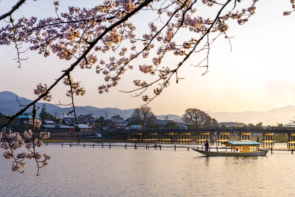 枕草子に「春はあけぼの(*2)」とあるように、古くから春はほのぼのと夜が明けはじめるころが格別に美しいとされてきました。嵐山は13世紀末に亀山上皇が奈良県・吉野山から桜を数百株移植して以来(*3)桜の名所として知られ、例年多くの観光客で賑わう場所です。特に早朝は他の観光客や屋形舟がいない時間帯なので、渓谷の桜を心静かに楽しめます。朝明けの柔らかな光に照らされた美しい情景を眺めながら、平安貴族さながらに優雅な時間を過ごしてほしいと考えています。
