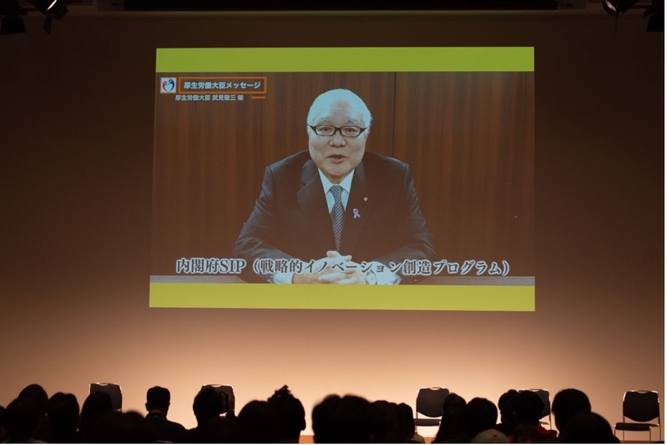 最初にイベント開催に寄せ、自治体を代表し兵庫県西脇市の片山象三市長よりご挨拶をいただき、武見敬三厚生労働大臣からのご祝辞(ビデオメッセージ)が紹介されました。