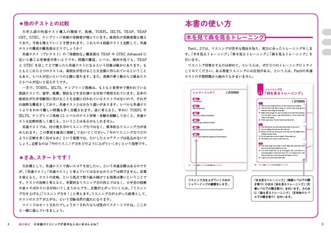 本書はそのようなみなさんのために、まったくリスニング対策をしたことがない人から、共通テストと同じ形式の予想問題に挑戦したい人まで、レベルに合ったリスニング力アップの方法を解説していきます。