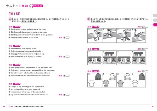 これまでに行われた試行調査の内容を徹底分析し、出題が予想される問題を2回分掲載しています。解説ではどこに注目して聞くべきかなど、問題を解く際の注意点や、頻出の単語や表現をピックアップしていますので、解説の内容をしっかり読んでください。根本のリスニング力のアップと、本番の試験での得点アップにつながります。