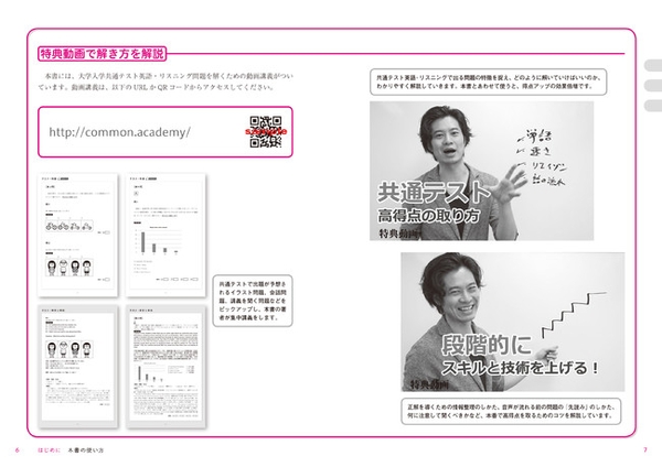 共通テストのリスニングではどんなことに注意して、どのように流れてくる英文を聞けばよいのか、高得点を取るためのコツを解説した、動画講義の特典付きです。本書の著者が、問題文の「先読み」のしかたなど、試験本番前に知っておかなければならない重要なポイントについて解説しています。