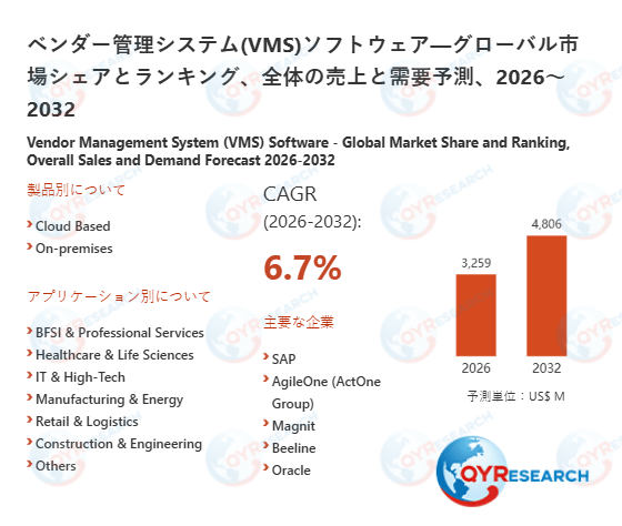 上記の図表/データは、QYResearchの最新レポート「ベンダー管理システム(VMS)ソフトウェア―グローバル市場シェアとランキング、全体の売上と需要予測、2026~2032」から引用されている。
