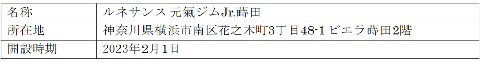 株式会社ルネサンス(本社:東京都墨田区、代表取締役社長執行役員:岡本 利治、以下「当社」)は2023年2月1日に、横浜市内に3ヶ所目となる放課後等デイサービス「元氣ジムJr.蒔田」を開設することをお知らせいたします。