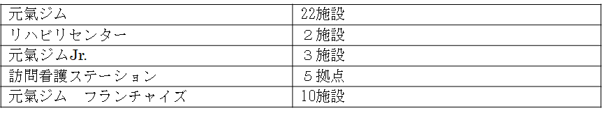 上記施設を含め、当社が展開する介護リハビリ関連の施設は、直営店・フランチャイズ合わせて42施設となりました。