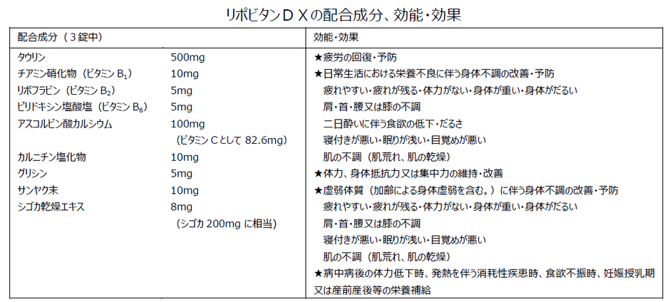 リポビタンDXは、疲労と栄養の偏りによる睡眠の悩みに同時にアプローチする指定医薬部外品です。有効成分をぎゅっと詰め込み、極薄フィルムコーティングにより飲みやすい錠剤ができました。我々の自信作をぜひお試しください。