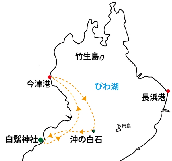 湖上からしか見ることができない、奇岩「沖の白石」を船窓から見学し、「近江の厳島」とも呼ばれる近江最古の神社「白鬚神社」を湖上から参拝します。