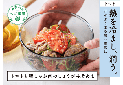7月31日に新着公開した「トマトと豚しゃぶ肉のしょうがみそあえ」は、料理家 齋藤 菜々子先生考案の「野菜が主役 ベジ薬膳」シリーズです。