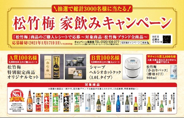 宝酒造株式会社は、「松竹梅」ブランド全商品を対象として“「松竹梅家飲みキャンペーン」”を