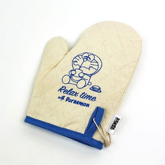おやつタイムを満喫するドラえもんの鍋つかみ。
