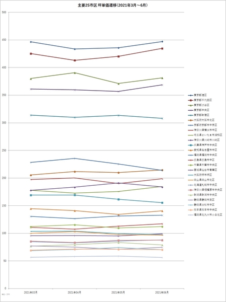 ■主要25市区 坪単価遷移(2021年3月~6月)
