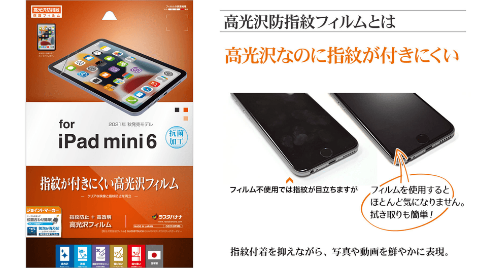 ◼︎指紋がつきにくい防指紋加工、拭き取りもらくらく!