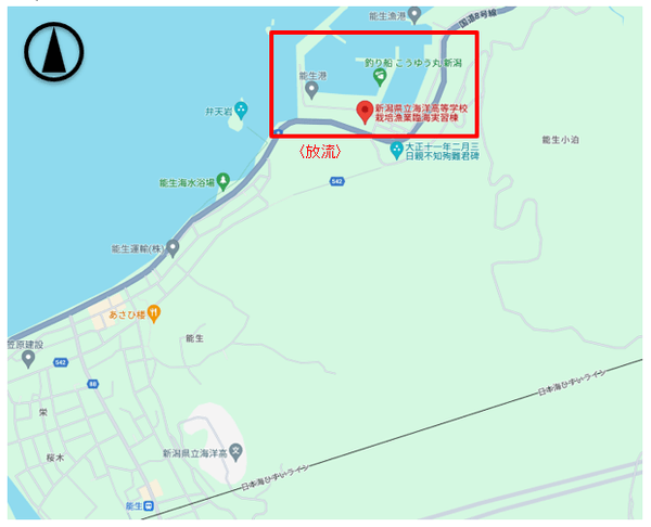 場所 :新潟県立海洋高等学校 栽培漁業臨海実習棟(能生漁港内)※集合場所