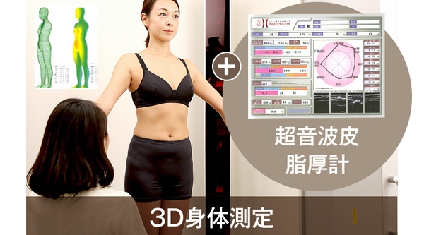 ダイエット・肥満治療専門院の渋谷DSクリニックでは、体の皮下脂肪・内臓脂肪の量やつき方が把握できる「超音波皮脂厚計」や体型を可視化できる「3D身体測定器」を使い、ドクターが結果を診断する「痩身ドック」を実施しています。(測定料:3,300円(税込))