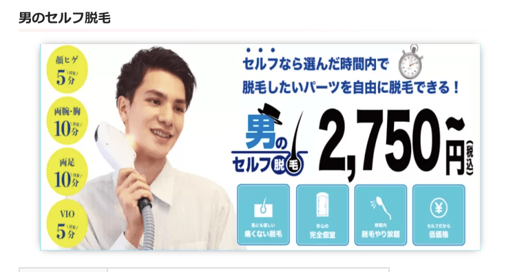 メンズにターゲットを絞り、セルフ(お客様ご自身で)脱毛を行うサービスを展開しております。