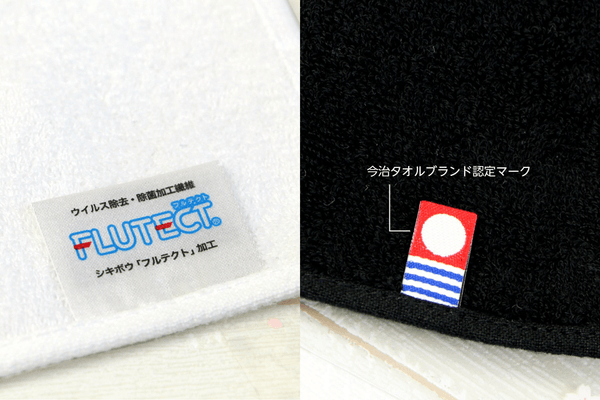 繊維上のウイルス除去・除菌加工(フルテクト®︎)を施しています。洗濯しても高い吸水性を維持し、繊維上の特定のウイルスの数を減少させ、特定の細菌の増殖を抑制する効果があります。