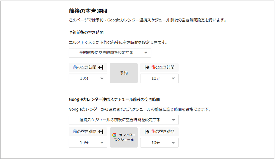予約が入った時間の前後に空き時間を設定できます。